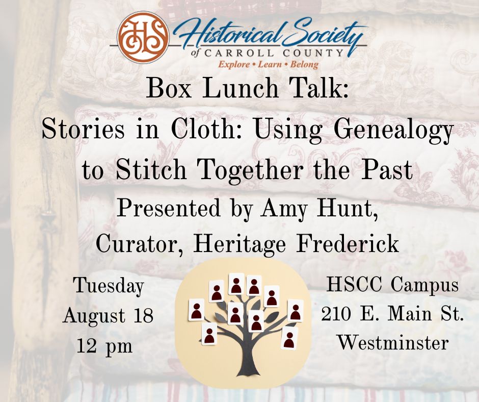 Box Lunch Talk: Stories in Cloth: Using Genealogy to Stitch Together the Past Presented by Amy Hunt